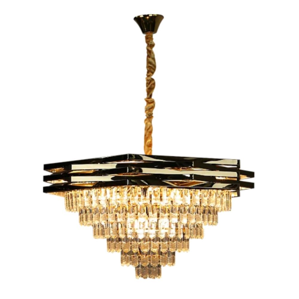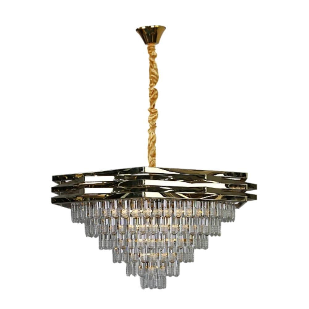 الكريستال الفاخر ومطلي باللون الذهبي الفاخر،بارتفاع قابل للتعديل وتركيب خالٍ من المتاعب يجعلها مثالية لأي غرفة. أضئ مساحتك بالرقي والسحر.